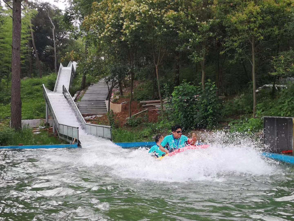 玻璃水滑道設置有“C”型彎道和緩沖,游客坐在漂流船上不僅可以享受速度與激情的滑行,還可居高臨下欣賞沿途的森林景觀和金牛湖的山水秀色。
